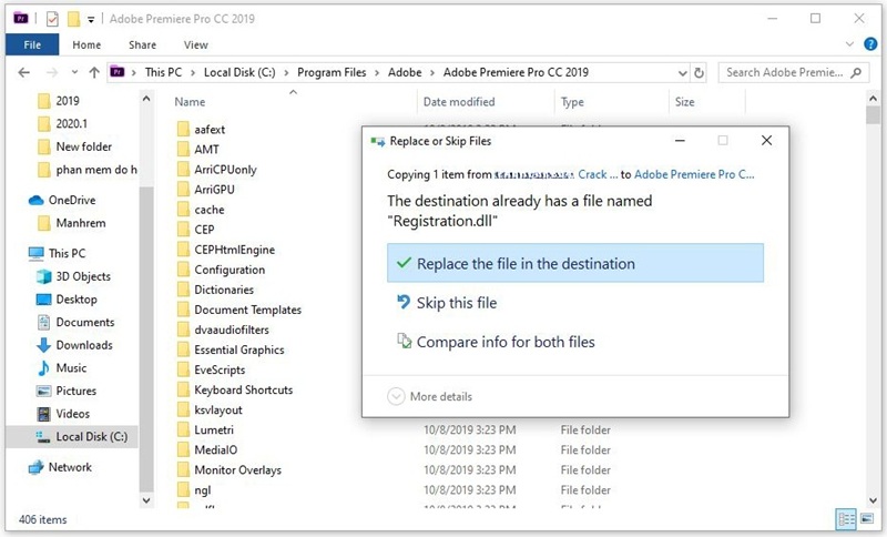 Vào thư mục Adobe Premiere Pro CC 2018 chạy file “amtlib.dll” để hoàn tất kích hoạt